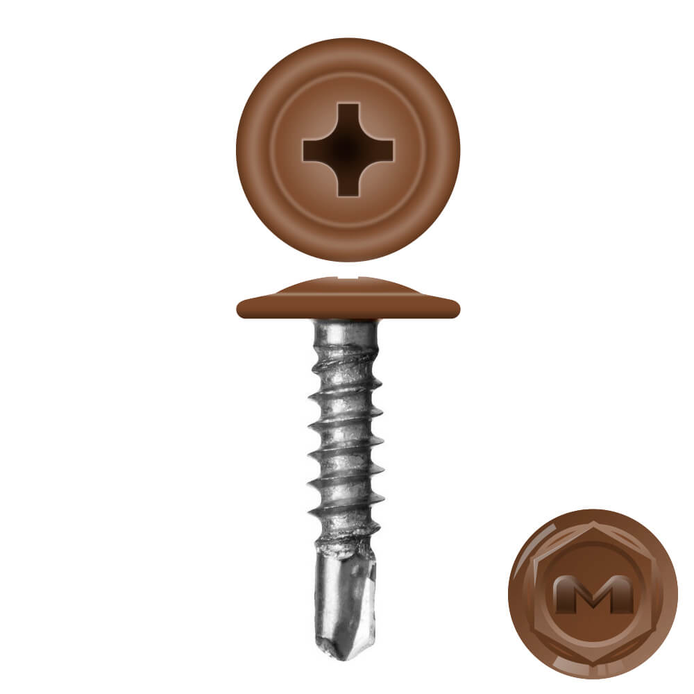 Caморез ПШС по металлу 4,2х16 RAL8007 Темное дерево (Каштан) прессшайба сверло
