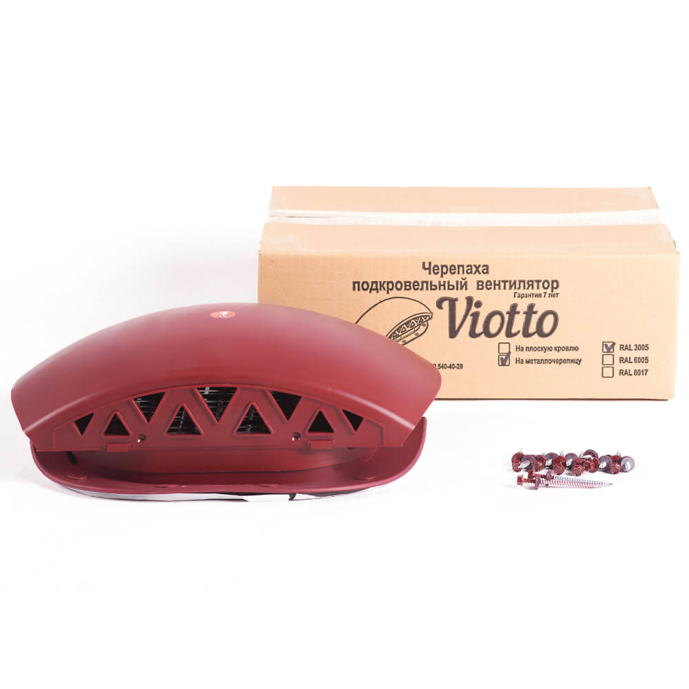 Подкровельный вентилятор "Черепаха" Viotto RAL 3005 Красное Вино для кровли из металлочерепицы в Ярославле