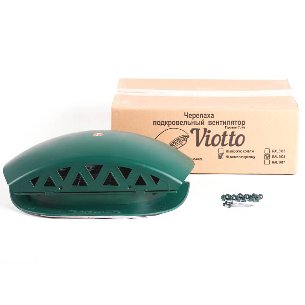 Подкровельный вентилятор "Черепаха" Viotto RAL 6005 Зеленый Мох для кровли из металлочерепицы в Ярославле