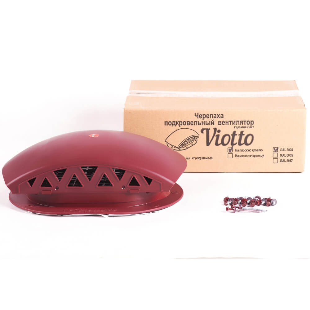 Подкровельный вентилятор "Черепаха" Viotto RAL 3005 Красное Вино для готовой мягкой и фальцевой кровли в Ярославле