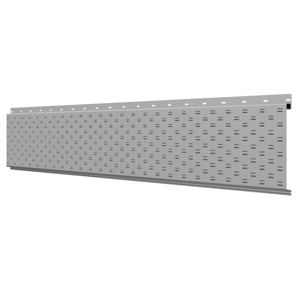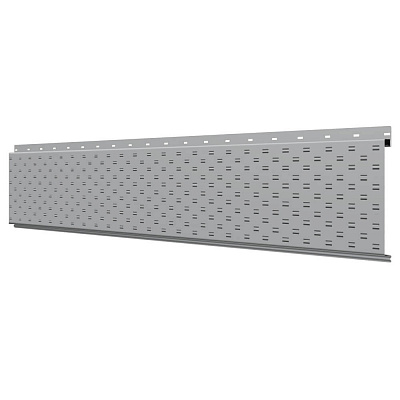 Линеарная потолочно-стеновая панель с ПЕРФОРАЦИЕЙ для вентиляции цвет RAL7004 Серый применяется в качестве софитов для подшивы крыши, наружной и внутренней отделки потолков, стен, фронтонов фасада дома в Ярославле.