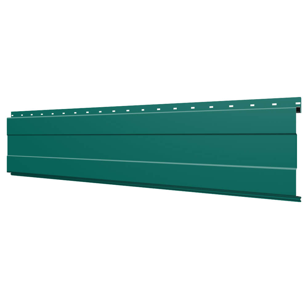 Линеарная потолочно-стеновая панель с ПОЛОСОЙ усиленная цвет RAL6026 Опал применяется в качестве софитов для подшивы крыши, наружной и внутренней отделки потолков, стен, фронтонов фасада дома в Ярославле.