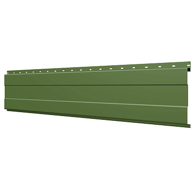 Линеарная потолочно-стеновая панель с ПОЛОСОЙ усиленная цвет RAL6002 Зеленый Лист применяется в качестве софитов для подшивы крыши, наружной и внутренней отделки потолков, стен, фронтонов фасада дома в Ярославле.
