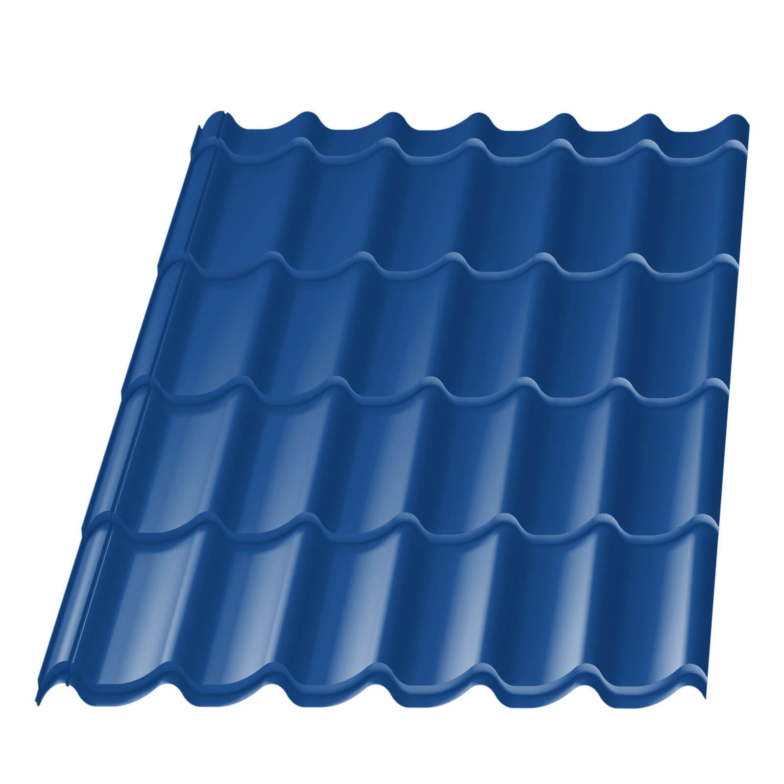 Металлическая черепица Меркурий цвет RAL 5002 Синий Сигнал имеет профиль внешне на кровле напоминающий классическую керамическую черепицу. Меркурий — это обновленный аналог профиля металлической черепицы для кровли крыши. Форма профиля имеет богатый внешний вид напоминающий небольшие набегающие волны. Лучшие показатели герметизации сделали профиль Меркурий гарантом стабильной и долговременной службы на крышах в Ярославле. Данный профиль отличается не только своим качеством и практичностью, но и благородным внешним видом.