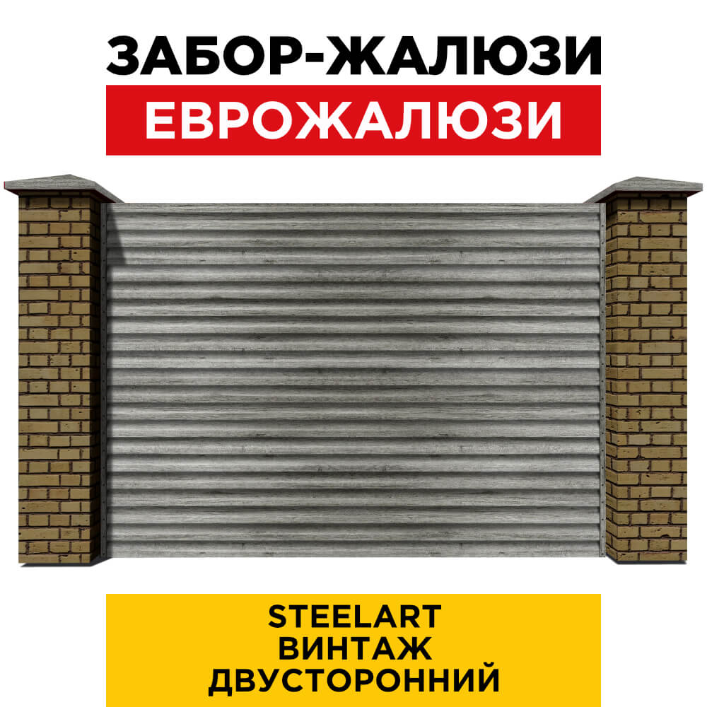 Ламель Еврожалюзи металлическая S-образная, цвет под дерево Винтаж SteelArt Россия двухстороннее покрытие, длина любая кратно 1см под заказ - для забора-жалюзи, беседки, перголы в Ярославле