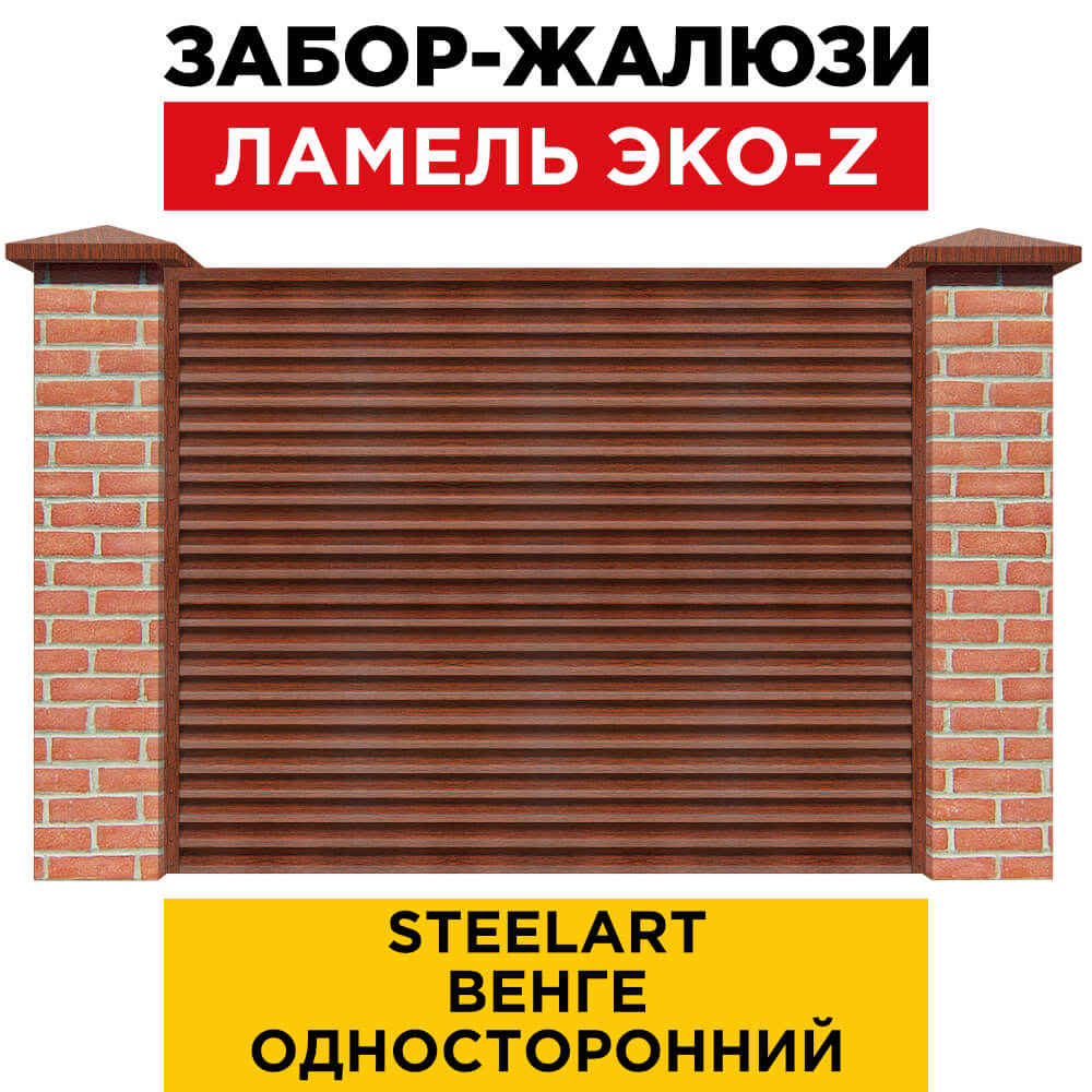 Ламель металлическая Z-образная простая ЭКО-Z, цвет под дерево Венге SteelArt одностороннее покрытие, длина любая кратно 1см под заказ - для забора-жалюзи, беседки, перголы в Ярославле.