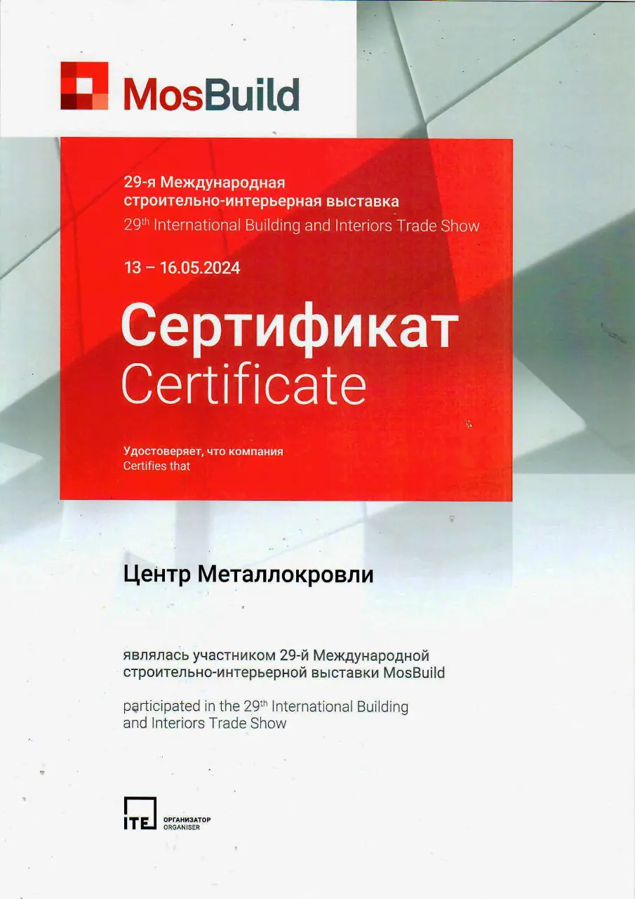 Сертификат участника "Международной строительно-интерьерной выставки MosBuild 2024"