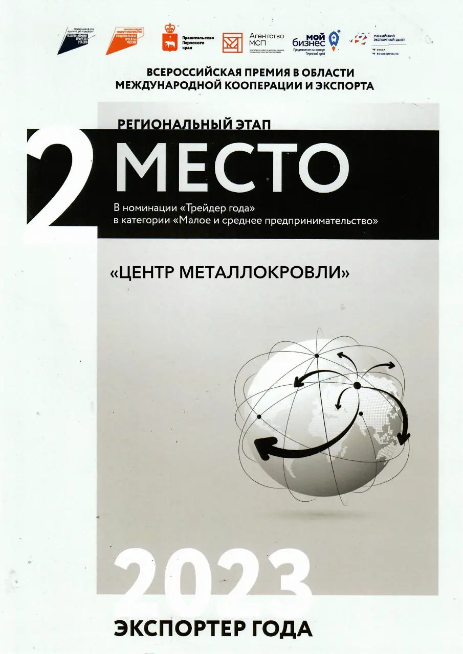 Диплом за 2-е место номинации "Трейдер года" конкурса "Экспортер года 2023"