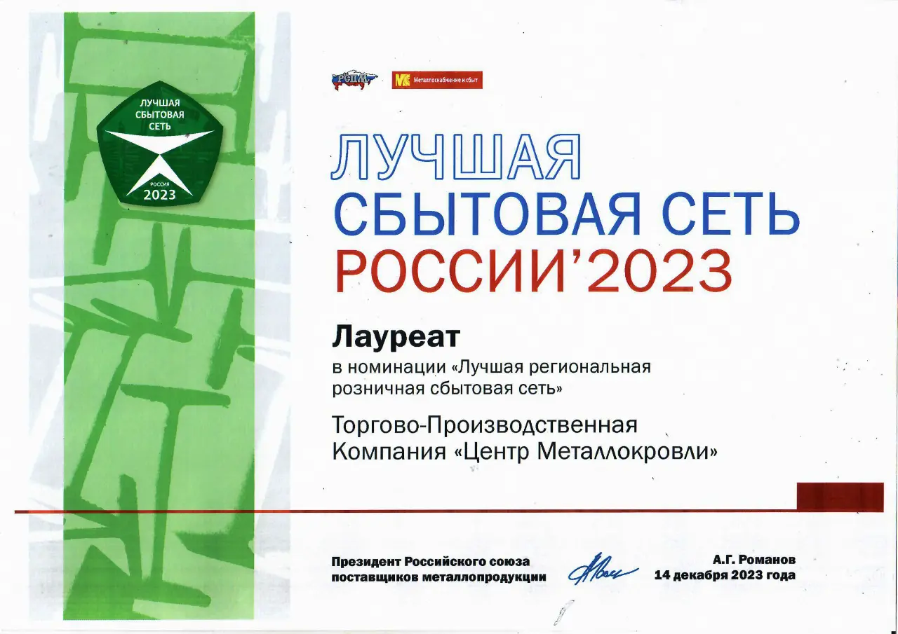 Сертификаты официального дистрибьютора подтверждают право ТПК «Центр Металлокровли» на продажу и обслуживание продукции ведущих российских и мировых брендов в Ярославле по выгодным ценам. Мы работаем напрямую с производителями, что гарантирует подлинность товаров, актуальность ассортимента и соблюдение всех требований по качеству и гарантии.